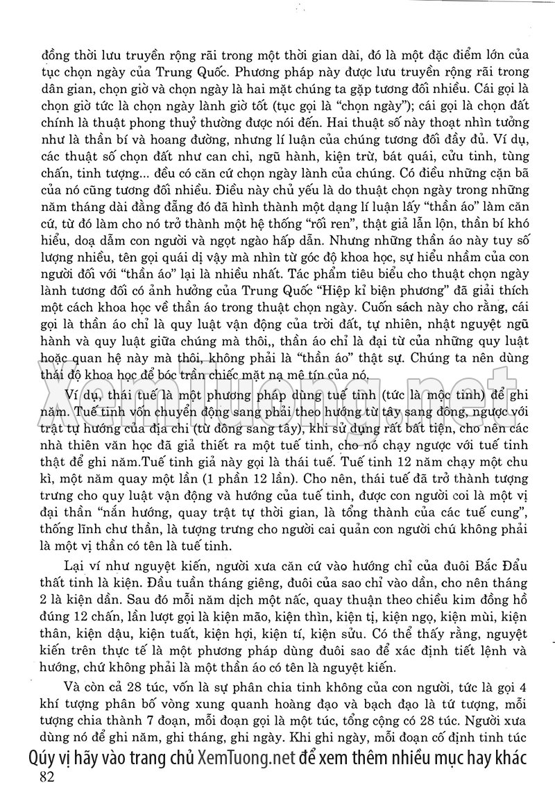 Từ xa xưa người phương Đông đã có quan niệm ngày tốt, ngày xấu trong sản xuất và đời sống xã hội. Họ cho rằng, nếu chọn được ngày tốt thì mọi việc sẽ thuận lợi, xuôi chèo mát mái. Theo thời gian, nó đã trở thành một phong tục, gắn bó sâu sắc với đời sống xã hộị. Quyển sách này giới thiệu một lượng lớn nội dung về hiện tượng văn hóa lựa chọn ngày tốt và có thêm vào những lời chú giải. Hy vọng sau khi đọc xong quyển sách này, bạn sẽ nhận thức được rằng làm việc theo quy luật phát triển của sự vật sẽ thành công thuận lợi, đó chính là kiểu lựa chọn ngày tốt trên một tầm cao mới.