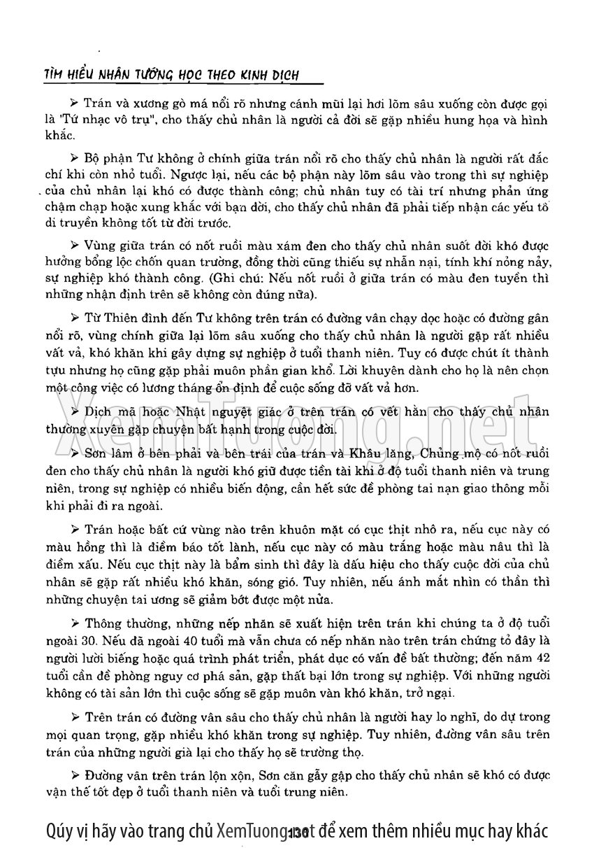 Sách "Tìm hiểu nhân tướng học theo kinh dịch" của tác giả Thiệu Vĩ Hoa cho chúng ta một cách nhìn toàn diễn về bản chất của thuật nhân tướng. Hầu hết chúng ta khi nói đến tướng thuật đều nghĩ đến khuôn mặt. Tuy nhiên như vậy có nghĩa là chỉ quan tâm đến phần hình dạng bên ngoài mà chưa chú trọng đến bản chất bên trong của thuật nhân tướng. Tướng thuật là nhìn tướng một người mà đoán được tuổi thọ, tài lộc, vận hạn... của họ, thậm chí của tổ tiên, cha mẹ, anh chị em trong gia đình người đó.
