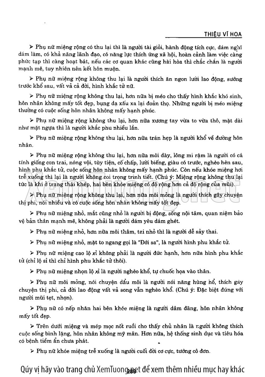 Sách "Tìm hiểu nhân tướng học theo kinh dịch" của tác giả Thiệu Vĩ Hoa cho chúng ta một cách nhìn toàn diễn về bản chất của thuật nhân tướng. Hầu hết chúng ta khi nói đến tướng thuật đều nghĩ đến khuôn mặt. Tuy nhiên như vậy có nghĩa là chỉ quan tâm đến phần hình dạng bên ngoài mà chưa chú trọng đến bản chất bên trong của thuật nhân tướng. Tướng thuật là nhìn tướng một người mà đoán được tuổi thọ, tài lộc, vận hạn... của họ, thậm chí của tổ tiên, cha mẹ, anh chị em trong gia đình người đó.