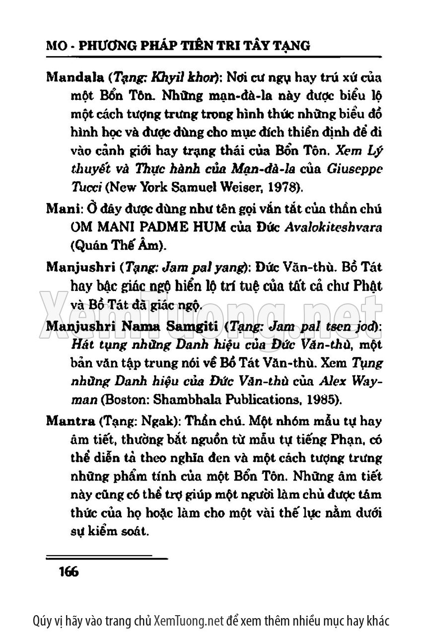 Phương pháp tiên tri Mo có hai chức năng chủ yếu. Trước hết, đây là một phương pháp cho phép ta tự mình nhận ra một tình huống hay sự kiện một cách rõ ràng. Kế đó, nếu chúng ta sử dụng phương pháp này cho người khác với động cơ đúng đắn của việc thực hành một sự bố thí vô ngã - như từng được thực hiện một cách rộng rãi bởi nhiều bậc thầy vĩ đại của Tây Tạng - thì đây sẽ là một phương tiện thúc đẩy sự thực hành Bồ Tát đạo.