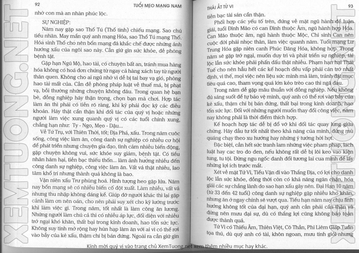 (Lưu ý: Thái Ất Tử Vi được chúng tôi scan từ sách, do đó mỗi tuổi sẽ có nhiều trang, quý vị xem xong hãy nhấn vào trang tiếp theo để xem hết phần tuổi muốn xem. Nếu quý vị xem bằng điện thoại thì hãy kéo qua lại để xem phần bị khuất.)