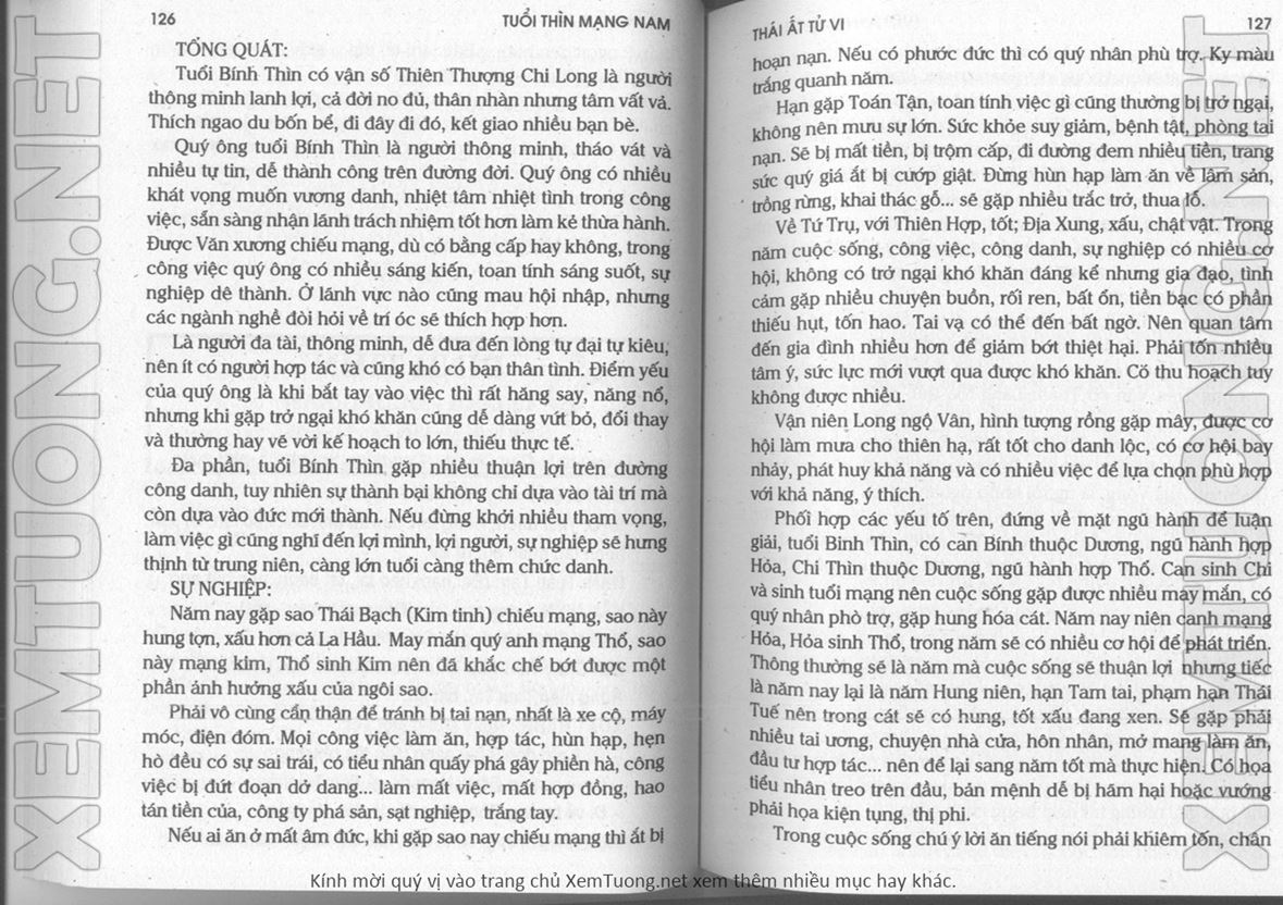 (Lưu ý: Thái Ất Tử Vi được chúng tôi scan từ sách, do đó mỗi tuổi sẽ có nhiều trang, quý vị xem xong hãy nhấn vào trang tiếp theo để xem hết phần tuổi muốn xem. Nếu quý vị xem bằng điện thoại thì hãy kéo qua lại để xem phần bị khuất.)