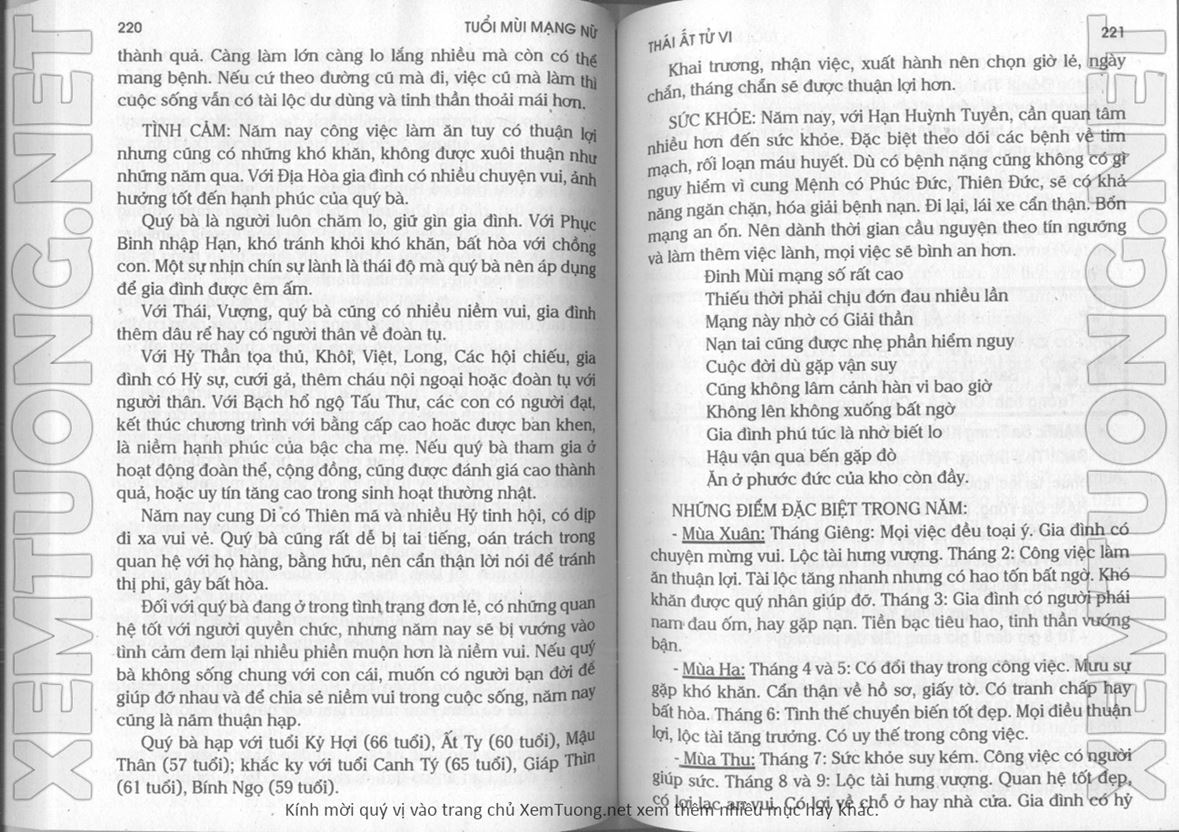 (Lưu ý: Thái Ất Tử Vi được chúng tôi scan từ sách, do đó mỗi tuổi sẽ có nhiều trang, quý vị xem xong hãy nhấn vào trang tiếp theo để xem hết phần tuổi muốn xem. Nếu quý vị xem bằng điện thoại thì hãy kéo qua lại để xem phần bị khuất.)