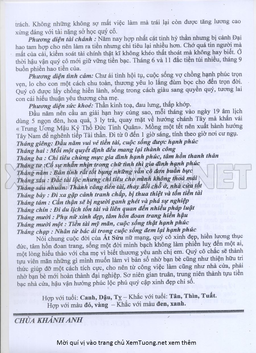 Tử Vi Năm Ất Tỵ 2025 mạng nữ ẤT SỬU