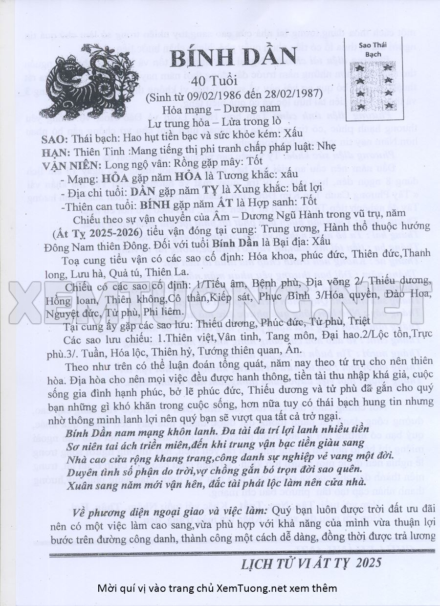 XEM SAO HẠN, TAM TAI, KIM LÂU, HOANG ỐC NĂM ẤT TỴ 2025