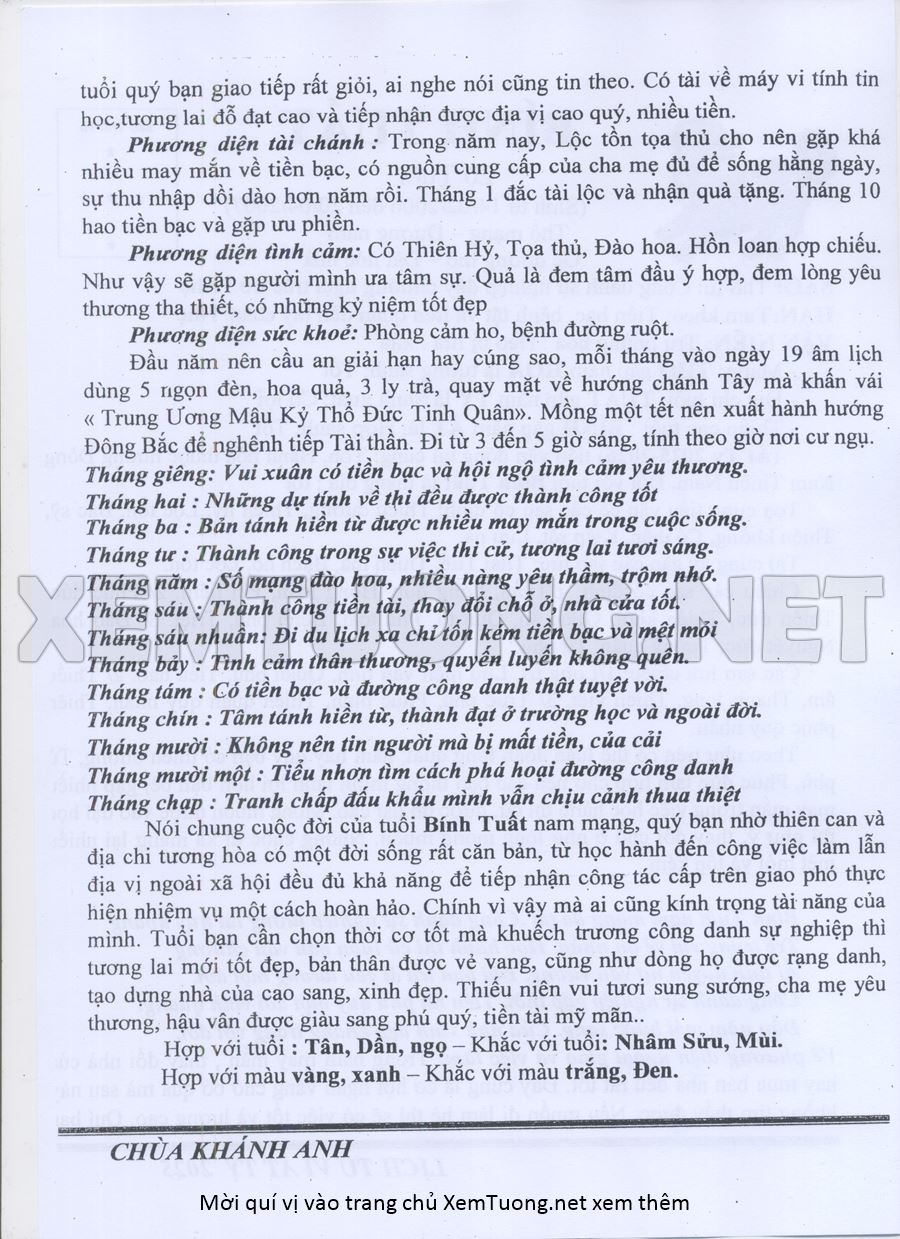 Tử Vi Năm Ất Tỵ 2025 mạng nam BÍNH TUẤT