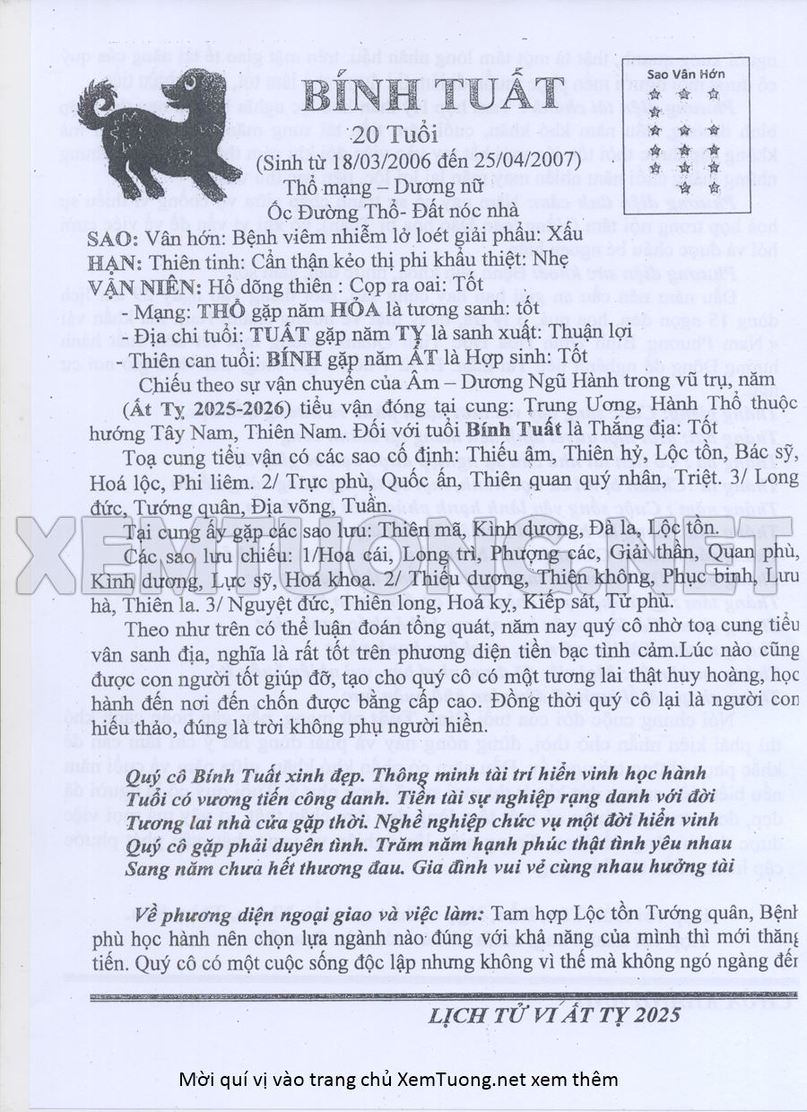 Tử Vi Năm Ất Tỵ 2025 mạng nữ BÍNH TUẤT