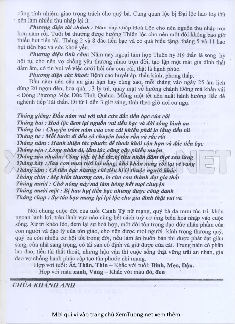 Tử Vi Năm Ất Tỵ 2025 mạng nữ CANH TÝ