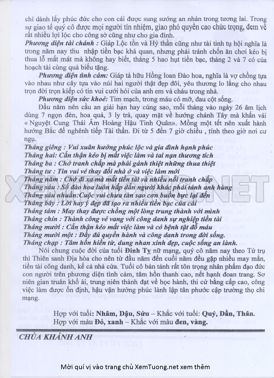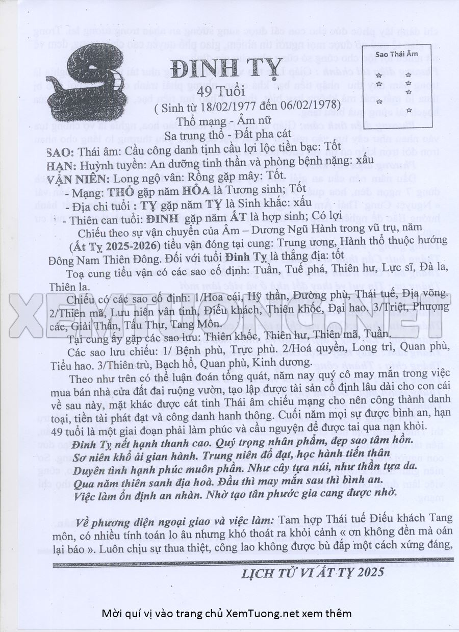 Tử Vi Năm Ất Tỵ 2025 mạng nữ Đinh TỴ