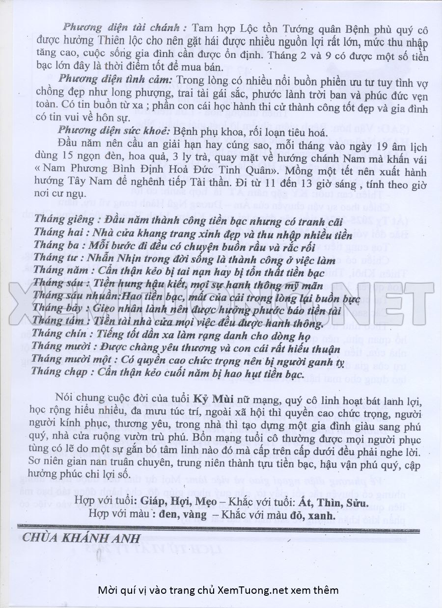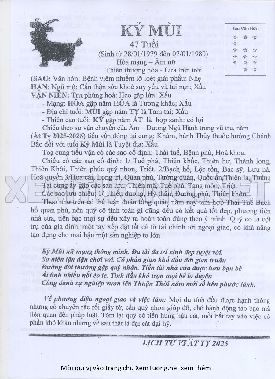 Tử Vi Năm Ất Tỵ 2025 mạng nữ KỶ MÙI