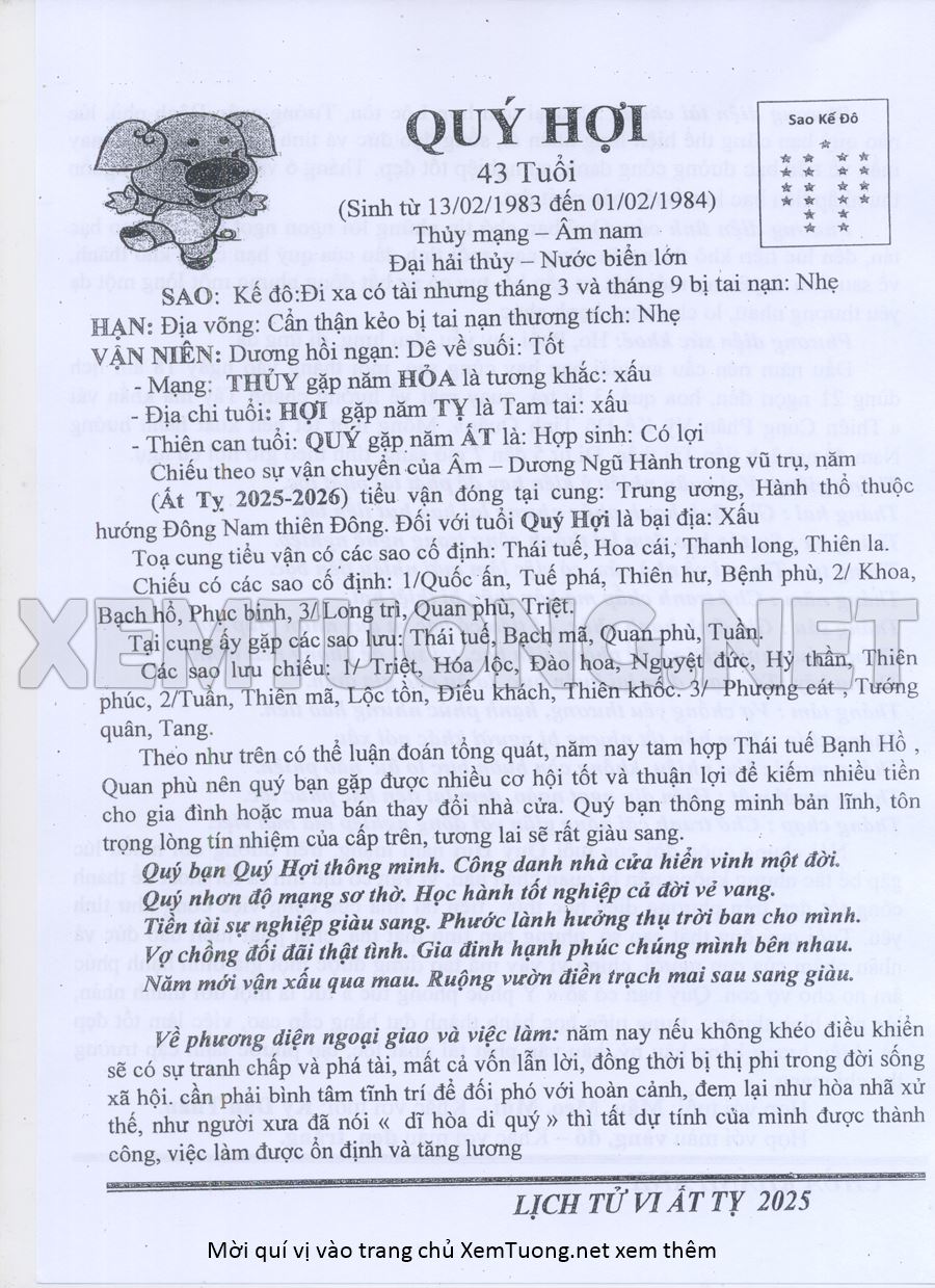 Tử Vi Năm Ất Tỵ 2025 mạng nam QUÝ HỢI