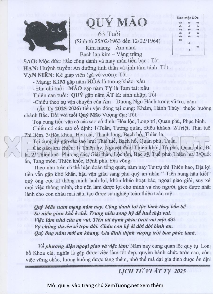 Tử Vi Năm Ất Tỵ 2025 mạng nam QUÝ MÃO