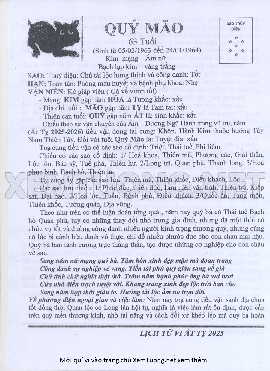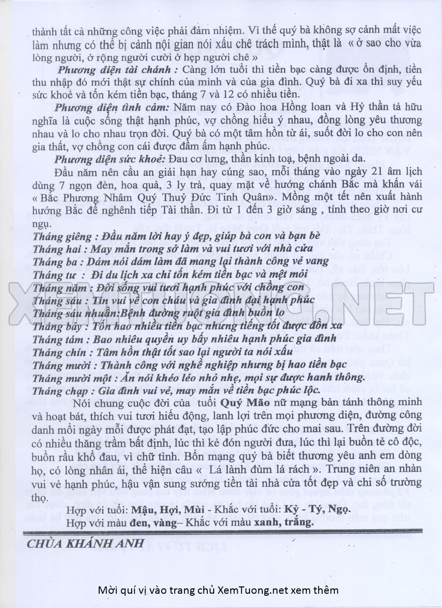 Tử Vi Năm Ất Tỵ 2025 mạng nữ QUÝ MÃO
