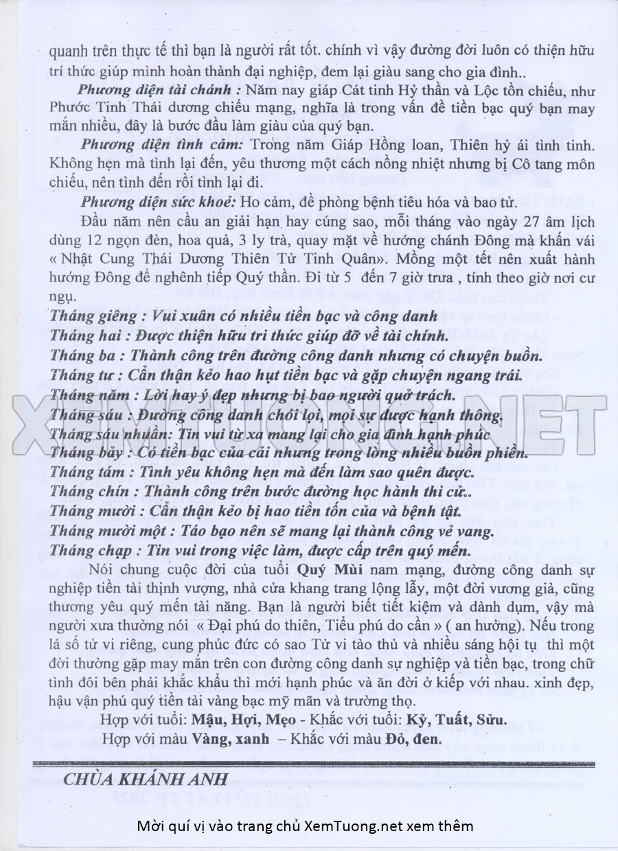 Tử Vi Năm Ất Tỵ 2025 mạng nam Qúy Mùi