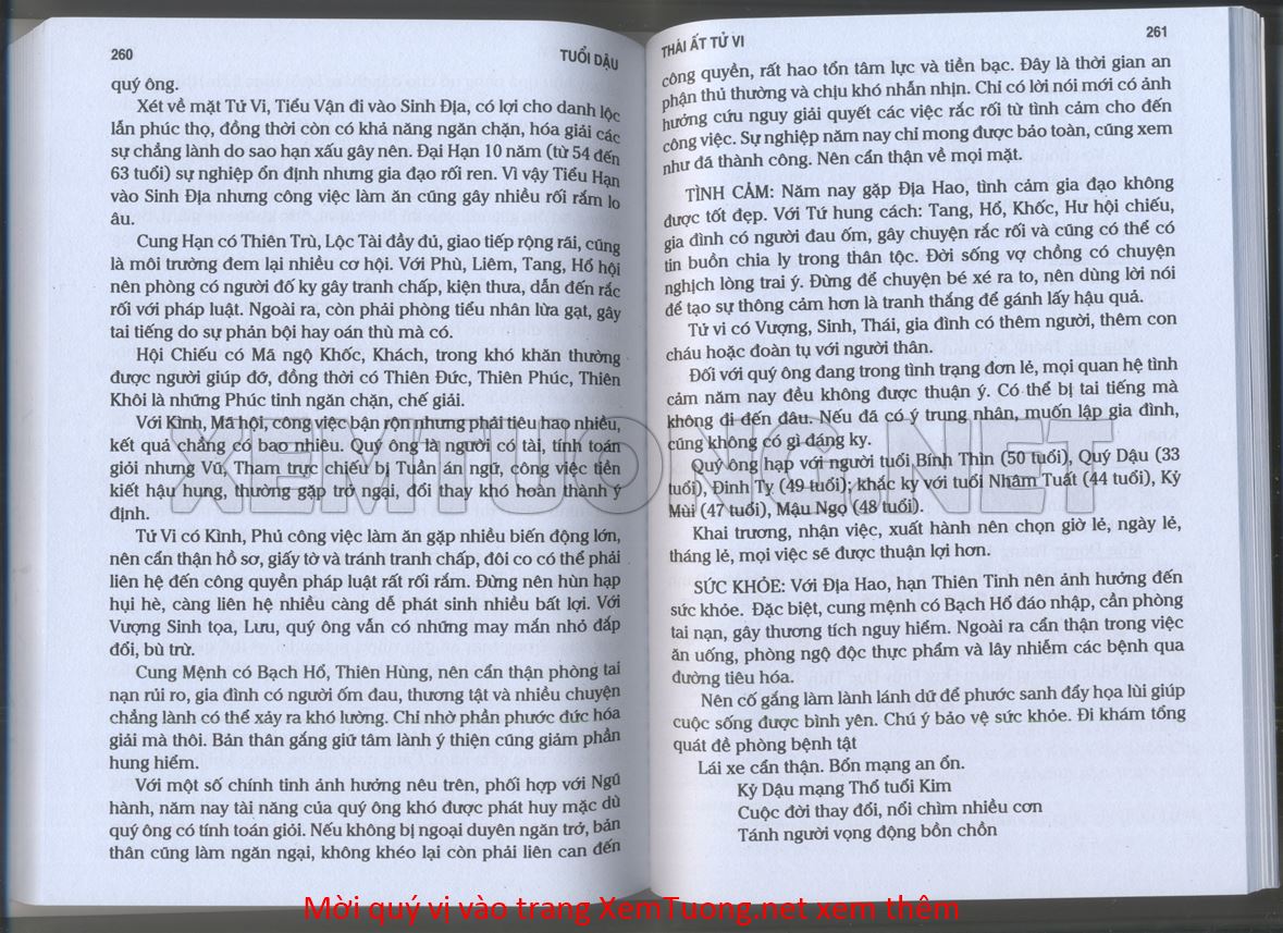 (Lưu ý: Thái Ất Tử Vi được chúng tôi scan từ sách, do đó mỗi tuổi sẽ có nhiều trang, quý vị xem xong hãy nhấn vào trang tiếp theo để xem hết phần tuổi muốn xem. Nếu quý vị xem bằng điện thoại thì hãy kéo qua lại để xem phần bị khuất.)