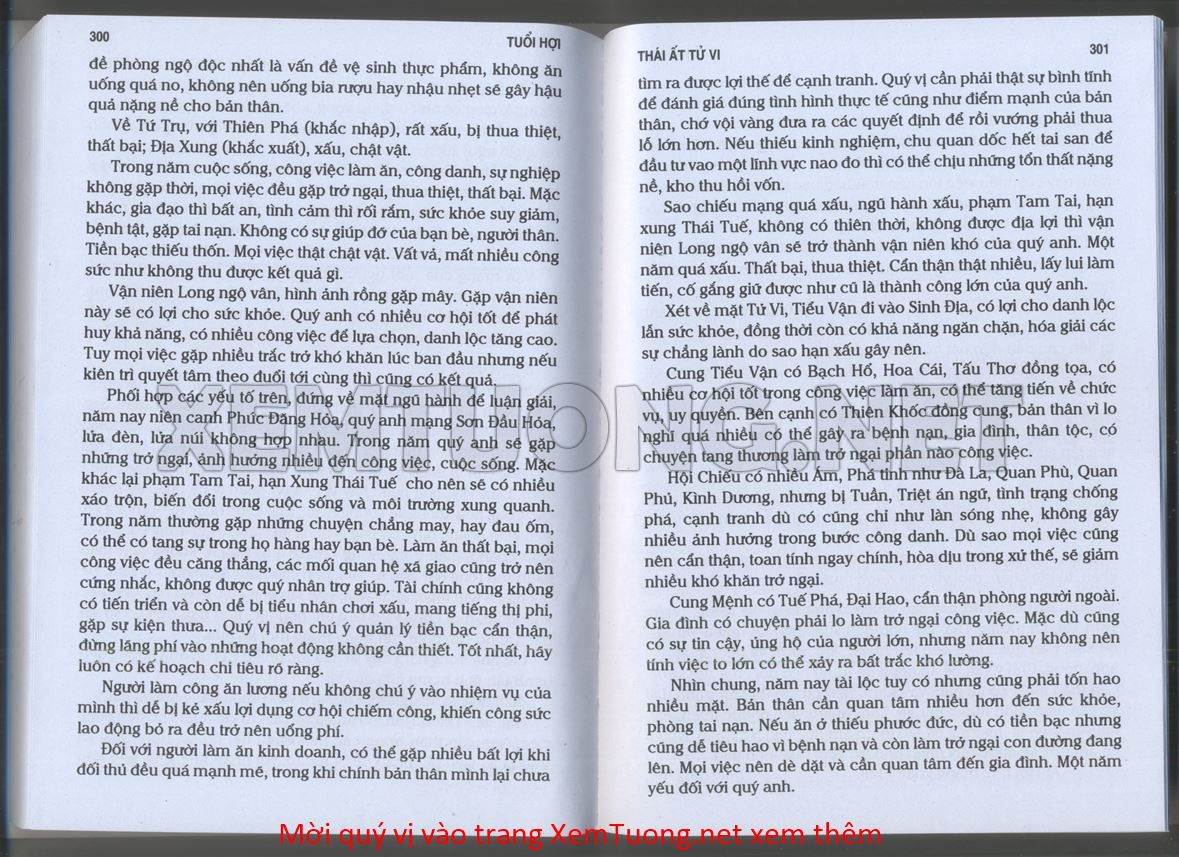 (Lưu ý: Thái Ất Tử Vi được chúng tôi scan từ sách, do đó mỗi tuổi sẽ có nhiều trang, quý vị xem xong hãy nhấn vào trang tiếp theo để xem hết phần tuổi muốn xem. Nếu quý vị xem bằng điện thoại thì hãy kéo qua lại để xem phần bị khuất.)