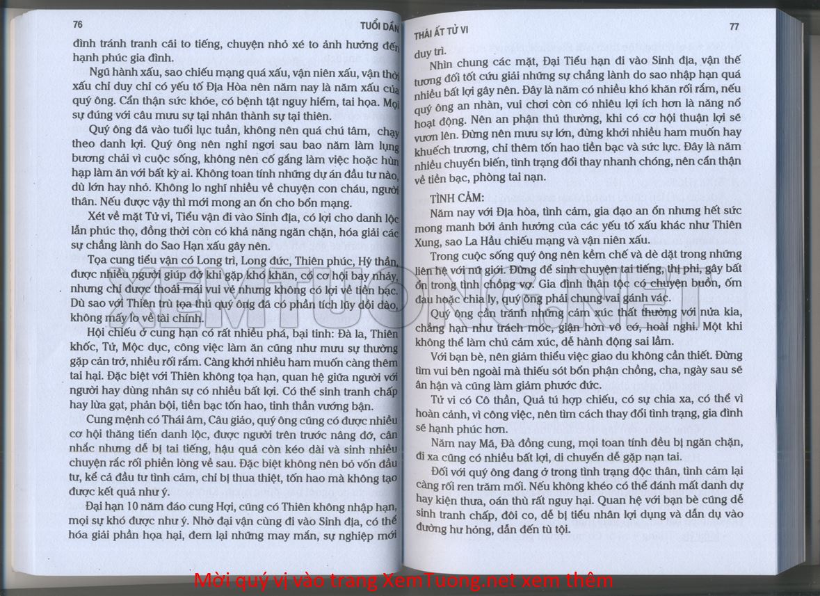 (Lưu ý: Thái Ất Tử Vi được chúng tôi scan từ sách, do đó mỗi tuổi sẽ có nhiều trang, quý vị xem xong hãy nhấn vào trang tiếp theo để xem hết phần tuổi muốn xem. Nếu quý vị xem bằng điện thoại thì hãy kéo qua lại để xem phần bị khuất.)