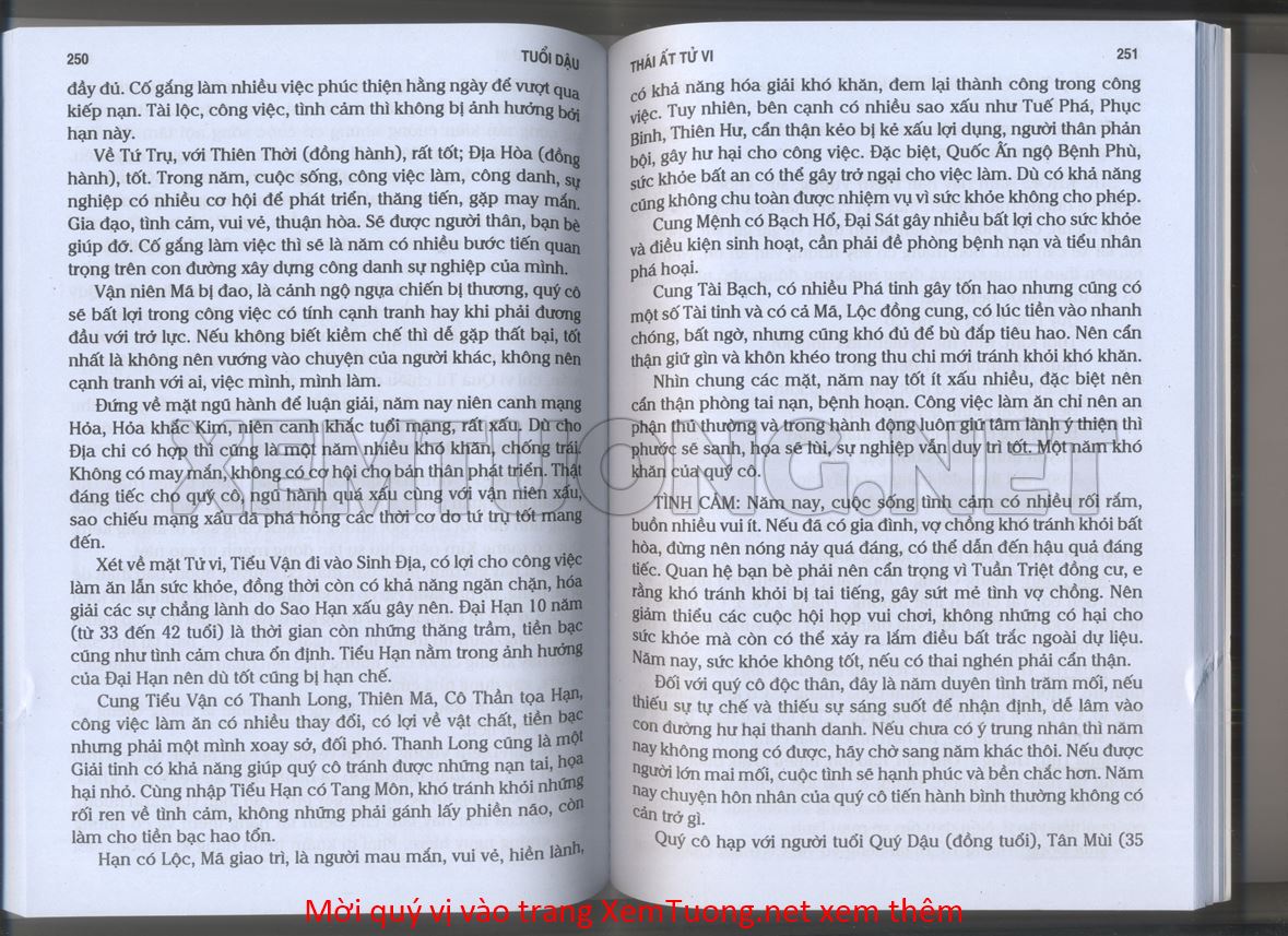 (Lưu ý: Thái Ất Tử Vi được chúng tôi scan từ sách, do đó mỗi tuổi sẽ có nhiều trang, quý vị xem xong hãy nhấn vào trang tiếp theo để xem hết phần tuổi muốn xem. Nếu quý vị xem bằng điện thoại thì hãy kéo qua lại để xem phần bị khuất.)