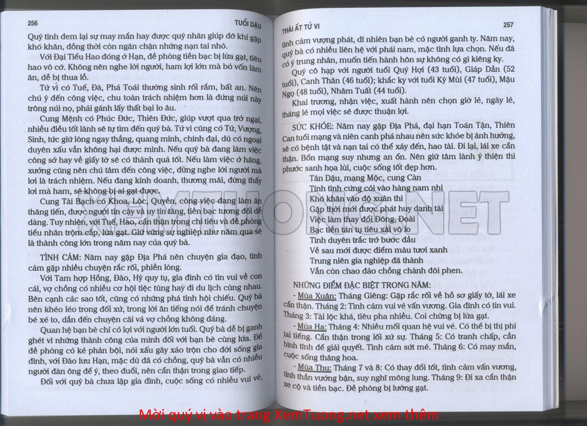 (Lưu ý: Thái Ất Tử Vi được chúng tôi scan từ sách, do đó mỗi tuổi sẽ có nhiều trang, quý vị xem xong hãy nhấn vào trang tiếp theo để xem hết phần tuổi muốn xem. Nếu quý vị xem bằng điện thoại thì hãy kéo qua lại để xem phần bị khuất.)