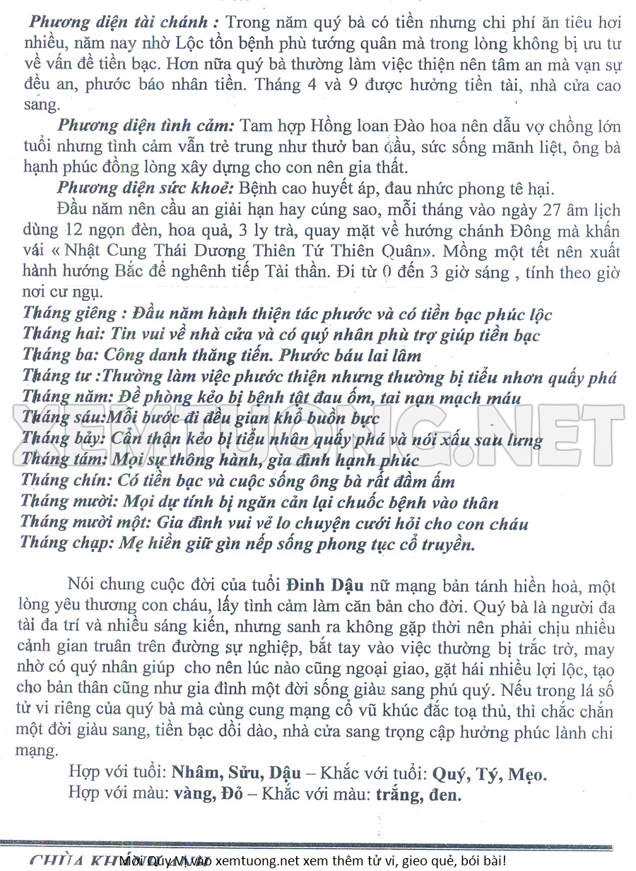 Tử Vi Năm Bính Ngọ 2026 mạng nữ Đinh DẬU