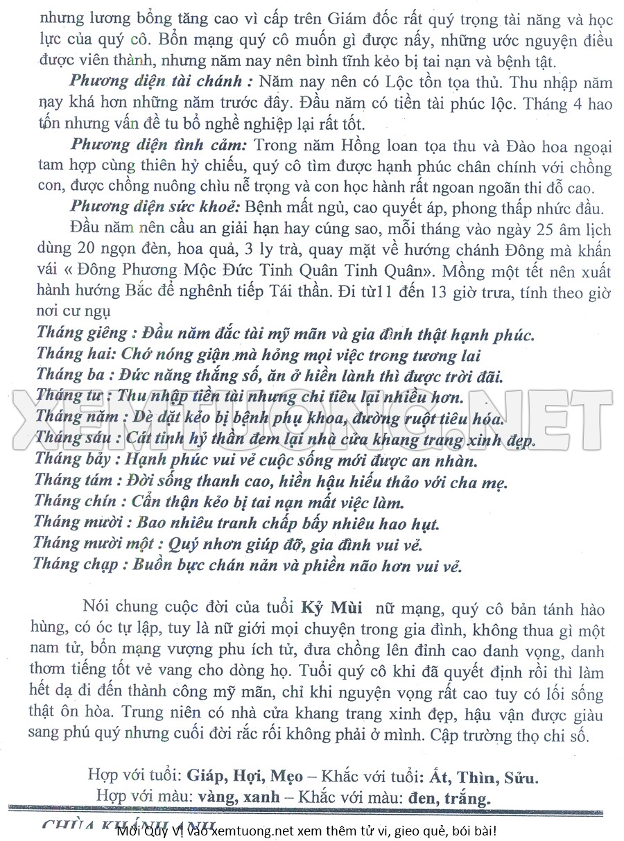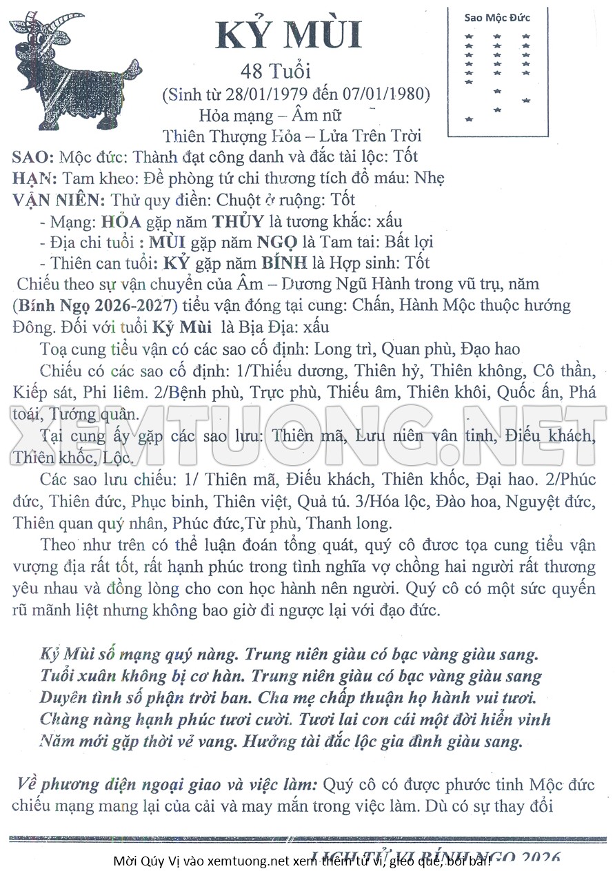 Tử Vi Năm Bính Ngọ 2026 mạng nữ KỶ MÙI