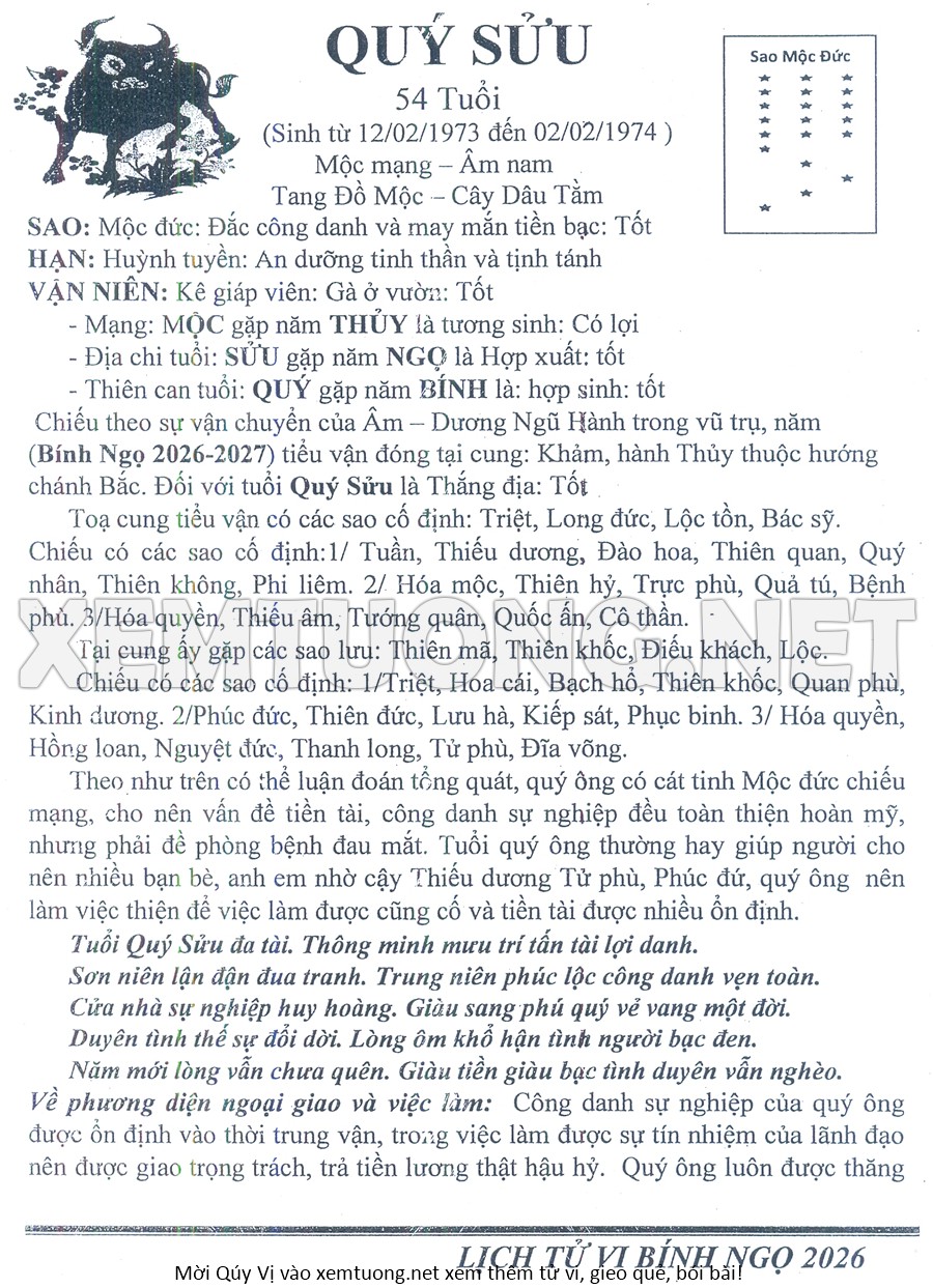Tử Vi Năm Bính Ngọ 2026 mạng nam QUÝ SỬU