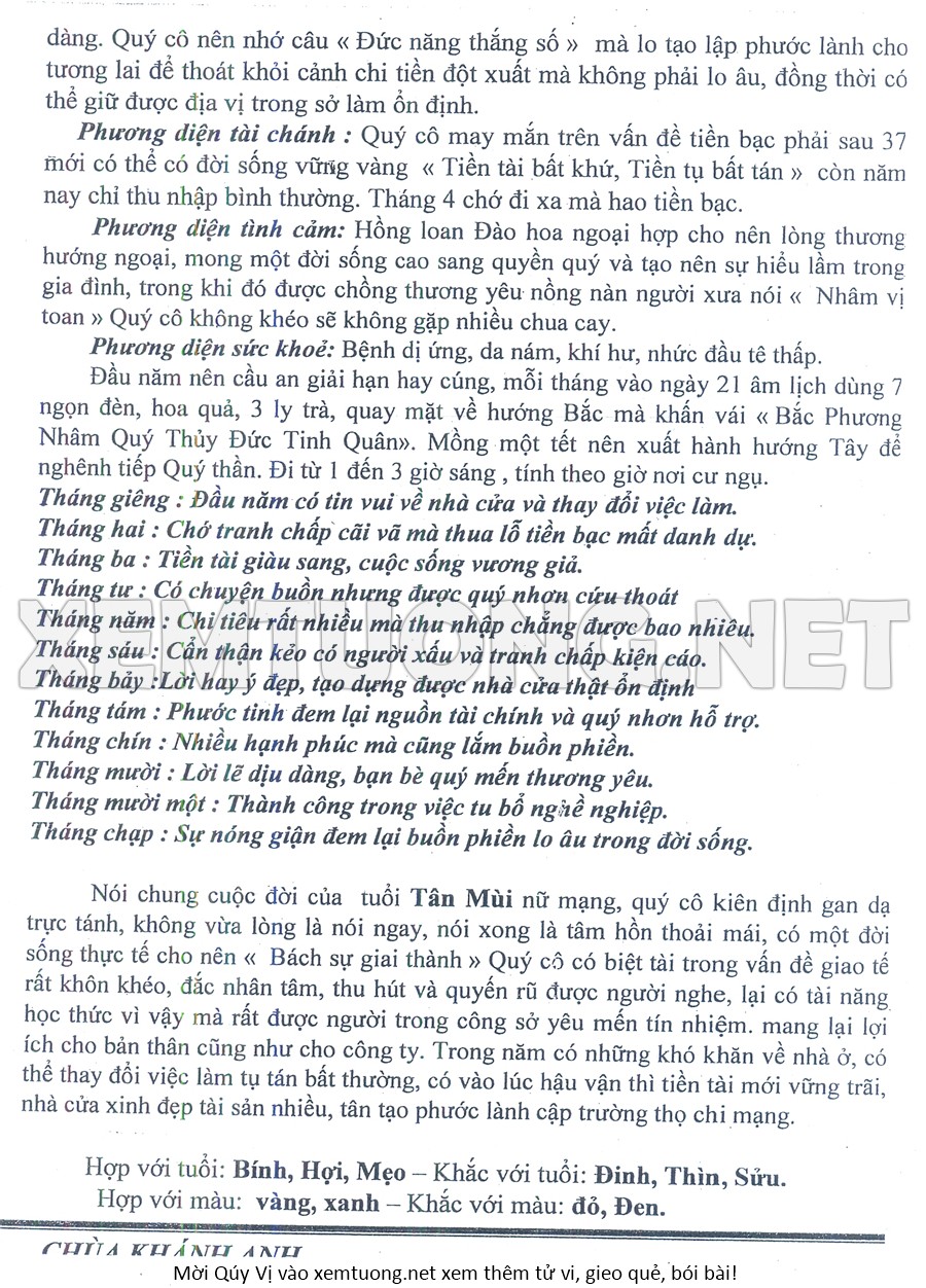 Tử Vi Năm Bính Ngọ 2026 mạng nữ TÂN MÙI
