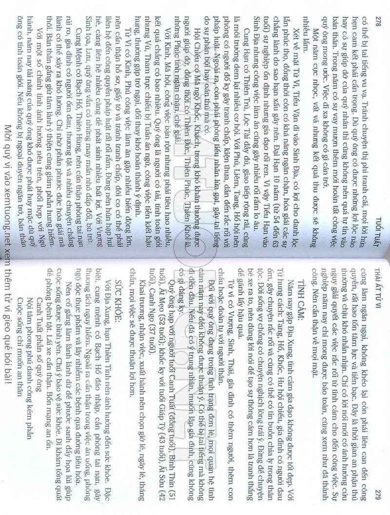 (Lưu ý: Thái Ất Tử Vi được chúng tôi scan từ sách, do đó mỗi tuổi sẽ có nhiều trang, quý vị xem xong hãy nhấn vào trang tiếp theo để xem hết phần tuổi muốn xem. Nếu quý vị xem bằng điện thoại thì hãy kéo qua lại để xem phần bị khuất.)