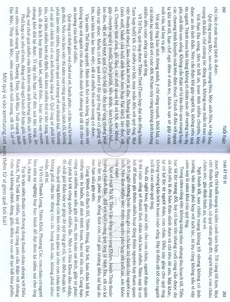 (Lưu ý: Thái Ất Tử Vi được chúng tôi scan từ sách, do đó mỗi tuổi sẽ có nhiều trang, quý vị xem xong hãy nhấn vào trang tiếp theo để xem hết phần tuổi muốn xem. Nếu quý vị xem bằng điện thoại thì hãy kéo qua lại để xem phần bị khuất.)