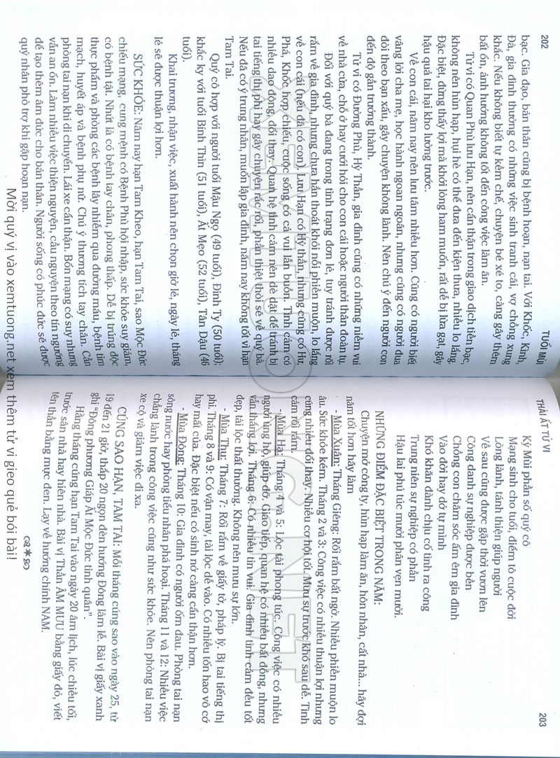 (Lưu ý: Thái Ất Tử Vi được chúng tôi scan từ sách, do đó mỗi tuổi sẽ có nhiều trang, quý vị xem xong hãy nhấn vào trang tiếp theo để xem hết phần tuổi muốn xem. Nếu quý vị xem bằng điện thoại thì hãy kéo qua lại để xem phần bị khuất.)