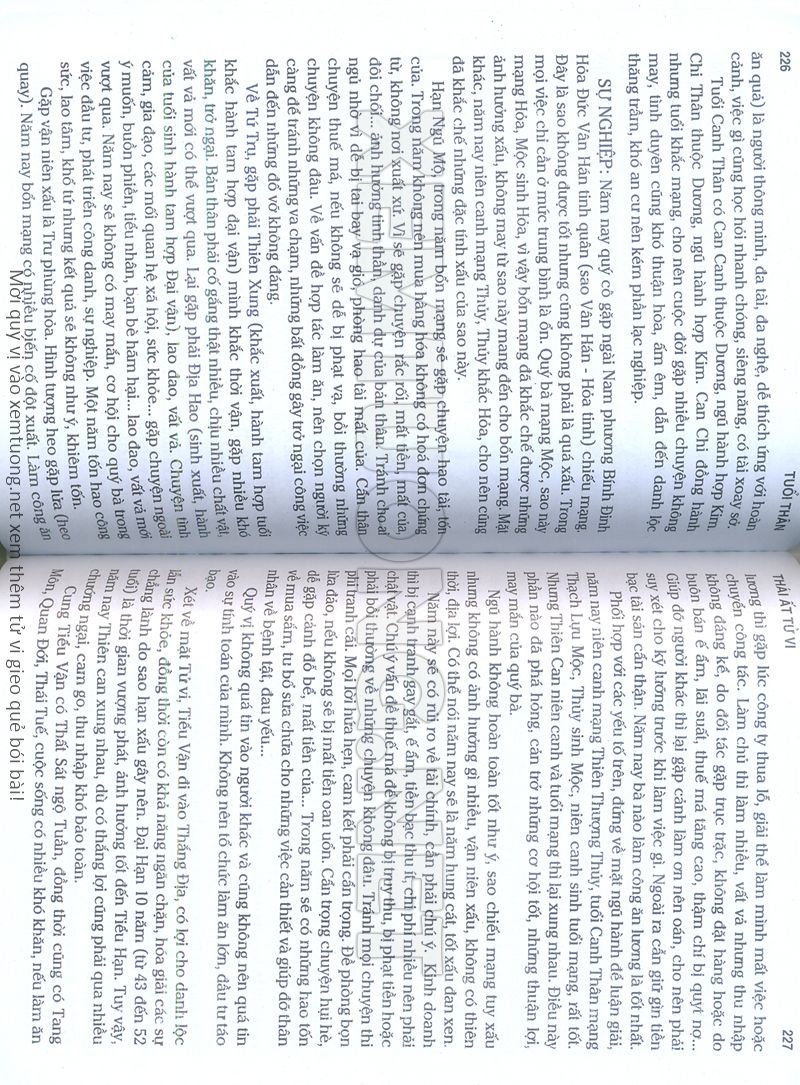 (Lưu ý: Thái Ất Tử Vi được chúng tôi scan từ sách, do đó mỗi tuổi sẽ có nhiều trang, quý vị xem xong hãy nhấn vào trang tiếp theo để xem hết phần tuổi muốn xem. Nếu quý vị xem bằng điện thoại thì hãy kéo qua lại để xem phần bị khuất.)