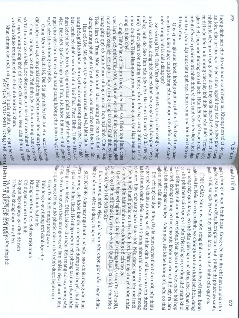 (Lưu ý: Thái Ất Tử Vi được chúng tôi scan từ sách, do đó mỗi tuổi sẽ có nhiều trang, quý vị xem xong hãy nhấn vào trang tiếp theo để xem hết phần tuổi muốn xem. Nếu quý vị xem bằng điện thoại thì hãy kéo qua lại để xem phần bị khuất.)