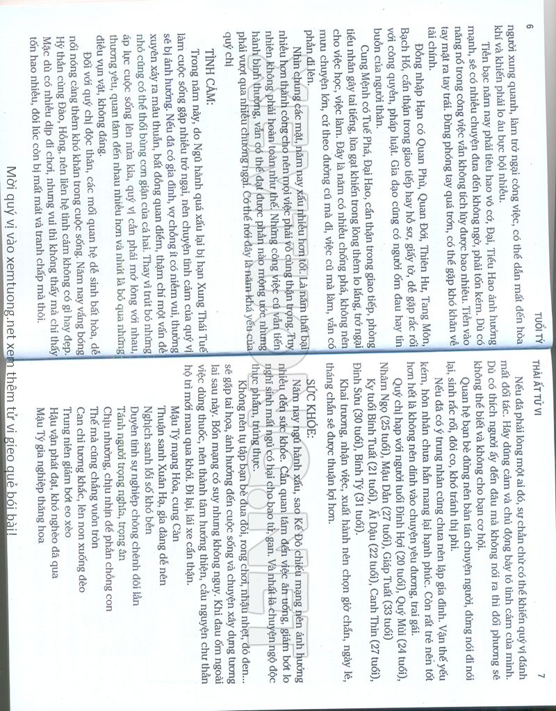 (Lưu ý: Thái Ất Tử Vi được chúng tôi scan từ sách, do đó mỗi tuổi sẽ có nhiều trang, quý vị xem xong hãy nhấn vào trang tiếp theo để xem hết phần tuổi muốn xem. Nếu quý vị xem bằng điện thoại thì hãy kéo qua lại để xem phần bị khuất.)